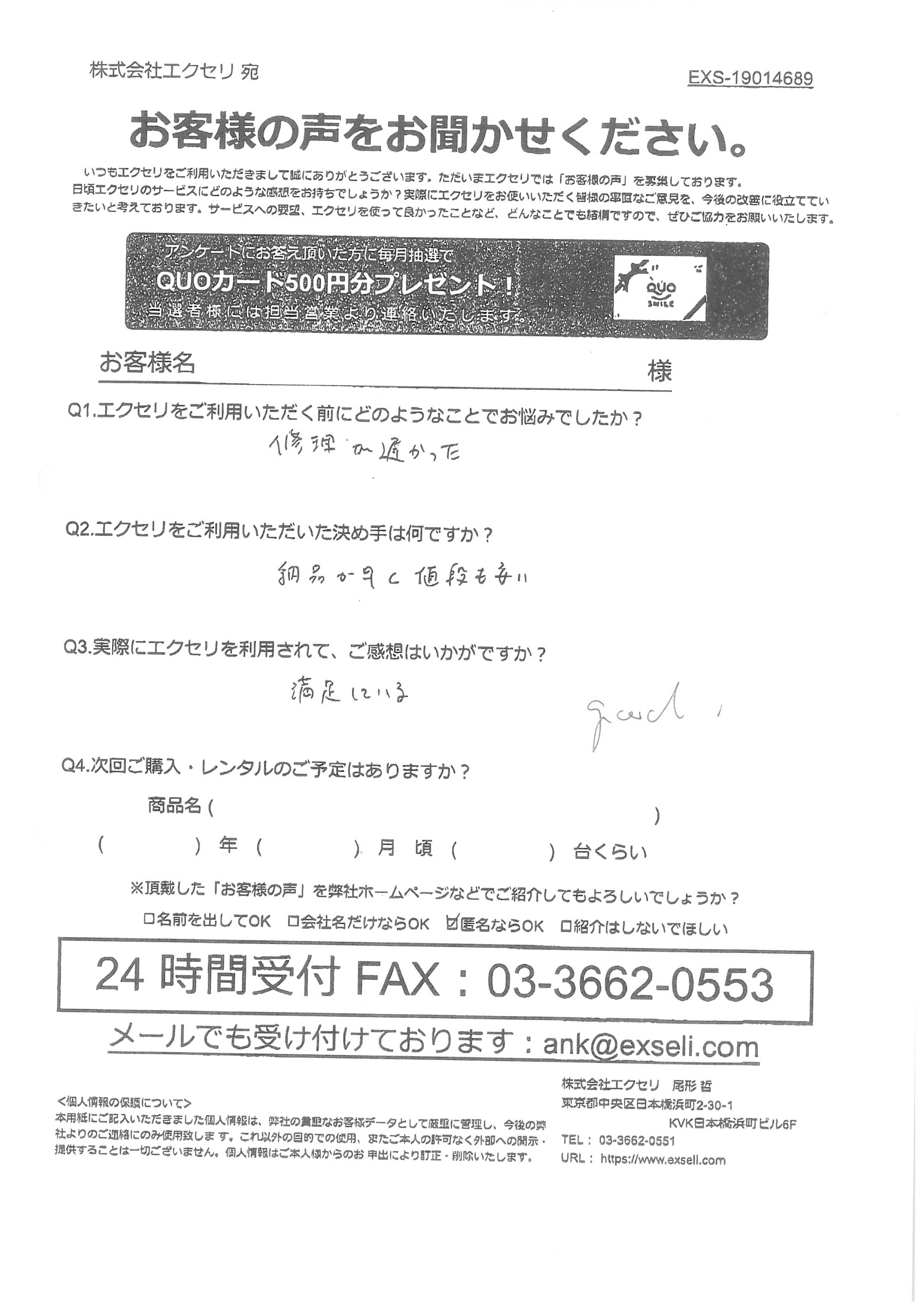 Q3.エクセリをお選びいただいた理由をご記載ください。