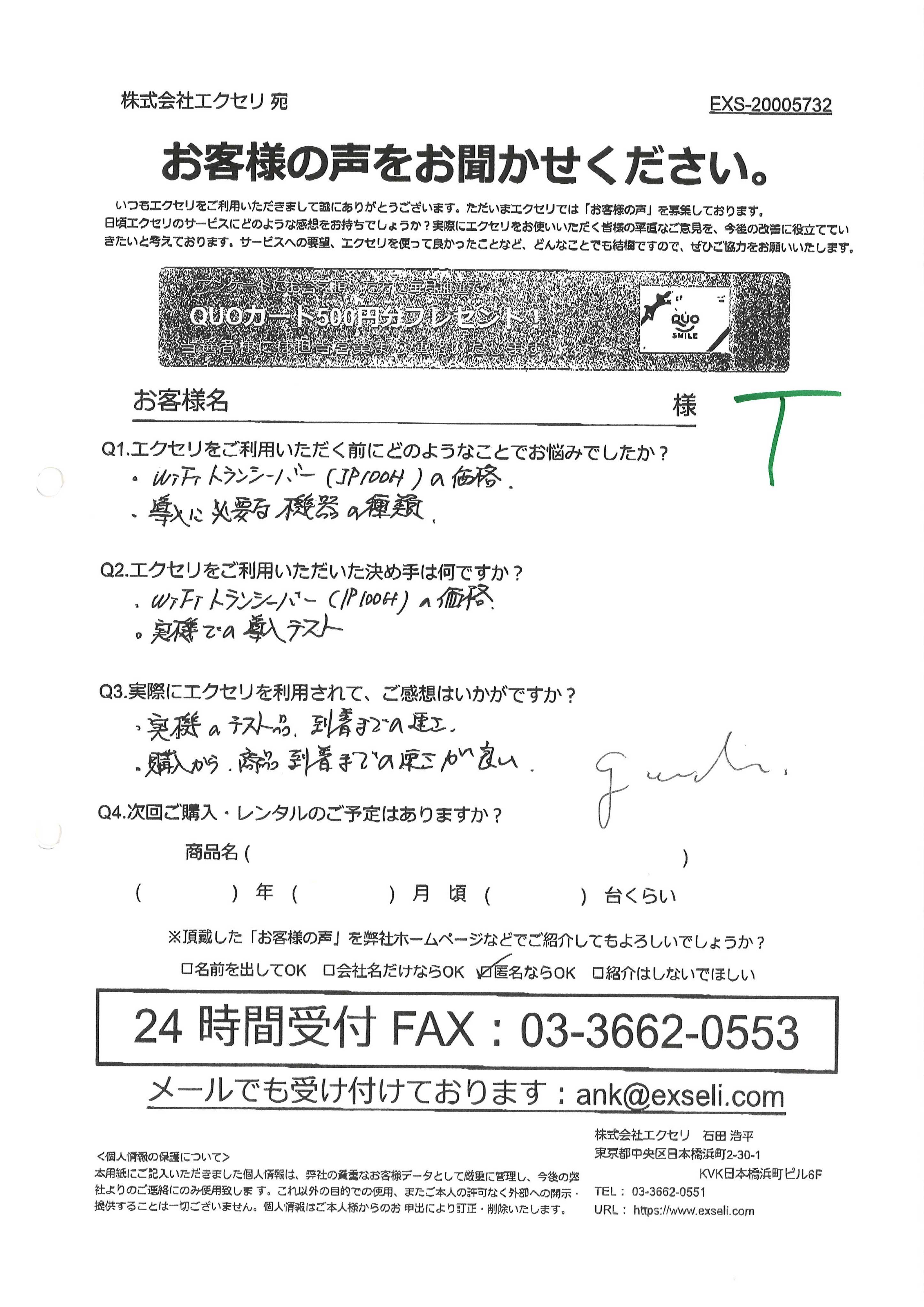 A3.Wi-Fiトランシーバー(IP100H)の価格、実機での導入テスト、実機のテスト品到着までの速さ、購入から商品到着までの速さが良い。