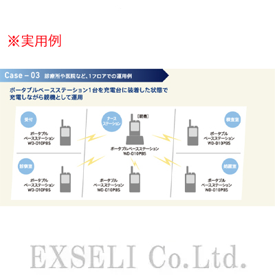 WD-D10PBS最大10名で同時通話が可能なデジタルワイヤレスインカムの親機兼子機。1.9GHz帯なのでWiFiの無線LAN(2.4GHz帯)の影響はありません。パーラー、ゲームセンター、病院、ホテル、商業施設などでご利用頂けます。
