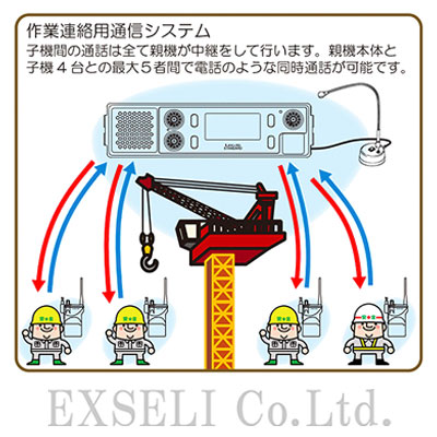 ●最大5人まで同時通話が可能な作業連絡用無線システムの子機です。