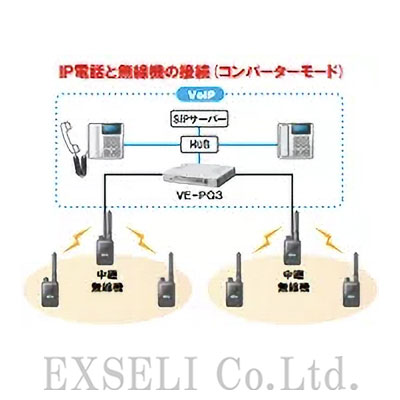 VE-PG2の後継機種で、IP電話、デジタル簡易無線機、特定小電力無線機がお互いに通信が可能になる他、新たに個別呼び出しの機能も追加されました。