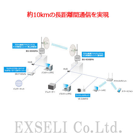 ・最大伝送距離(見通し): 付属のパラボラアンテナ同士で約10km