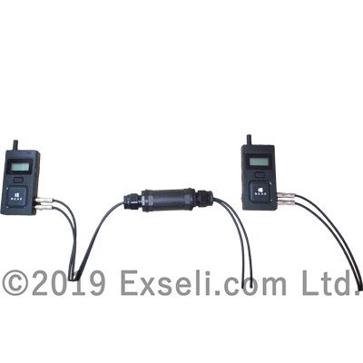 ●ベアー製同時通話型無線システムBRIDGECOM X5で6人以上の近距離通信を行いたい場合にBRIDGECOM X5同士を接続する中継接続コネクターです。(画像下は接続イメージ)