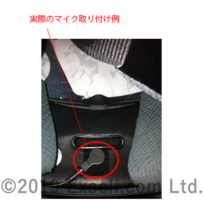 ●フルフェイス型ヘルメット専用の取付型マイクで、付属のマジックテープでスピーカーとマイクをヘルメット内部に貼り付けて使用します。取り付けはマジックテープで貼るだけで簡単です。(画像下はイメージ)