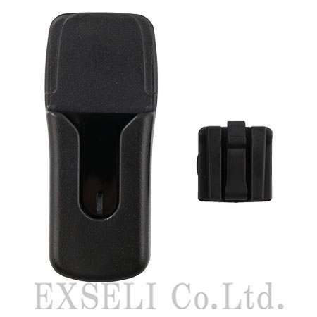 ●取付方法は、付属のフックを無線機本体にスライドして固定した後、クリップをフックにスライドします。