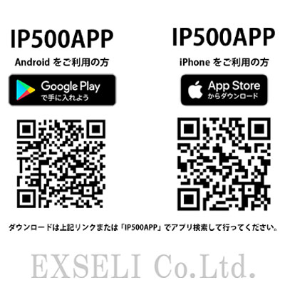 ●IP500APPアプリの入手方法: Androidをご利用の方はGoogle Playより、iPhoneの方はApp Storeよりダウンロードできます。「IP500APP」でアプリ検索して行ってください。