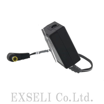 ●KSC-32の充電台とACアダプターの間にヒューズボックスKCT-69EXを挟む形で接続して充電できます。KCT-69EXのDCプラグを充電台に差し込み、KCT-69EXのDCジャックにアダプターのプラグを差し込むだけで簡単に接続できます。