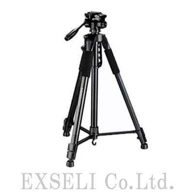 ●付属している三脚(画像下を参照)を使用すれば、一時的な定点設置を行うこともできます。三脚は伸縮可能ですので、自由に高さを調節して設置できます。