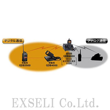 GDB4000はアナログ簡易業務用無線機とも通信できる車載型のデジタル簡易無線免許局です。