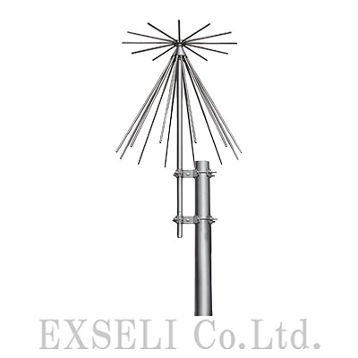 ●風の影響を低減することと軽量化のために、細径エレメントの複数構成(放射素子12本、地線素子)となっています。