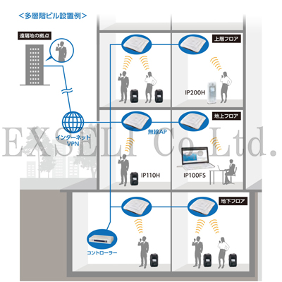 別売りの無線LANトランシーバー用コントローラーと無線LAN環境を使い、同じエリア内だけでなく遠隔地との通話も可能です。