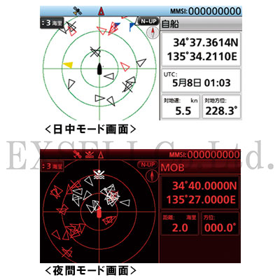 ●自船のAIS情報を送信します。他船の位置(AIS情報)がわかります。