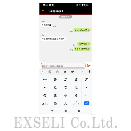 - ●アプリで日本語の文字を送信する場合は、受信側無線機の言語設定も日本語にしてください。言語設定が違うと送信できない場合があります。