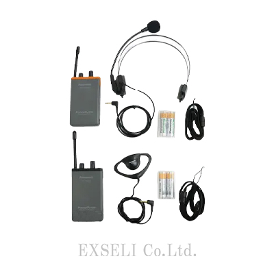 ●送信機にはヘッドセット形マイクロホンRFEM801P-1、受信機には耳掛け式イヤホンRFEV907P-K1Fを標準セットでご用意。ご購入後すぐにご使用できます。