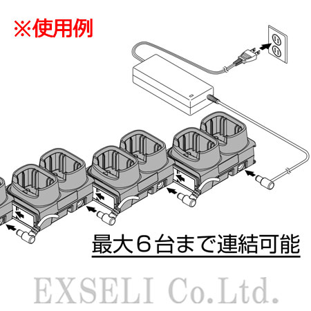 ●最大6台まで連結して、無線機を12台まで同時充電が可能です。