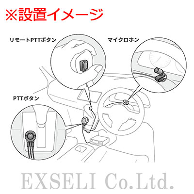 ●RJ-45プラグケーブル付き大型PTTボタン、マイクロホンケーブル、リモートPTTボタンケーブルで構成します(2枚目画像は設置イメージ)。