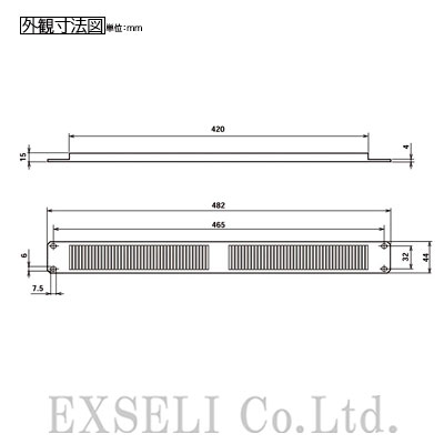 ・寸法: 高さ約44mm × 幅約482mm × 奥行約15mm