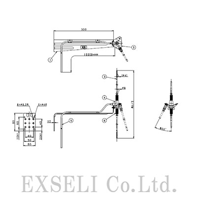 障害物により、下側のエレメントが垂直に固定できない場合は角度取付金具の取付穴をご利用いただけます。付属の六角ボルトとばね座金を使用することで、2方向への取付が可能です。六角ボルトは説明書に記載された指定トルク値で締め付けてください。角度取付金具へのエレメント取り付けは下側のみとなります。上側のエレメントは必ず給電部に取り付けてください。