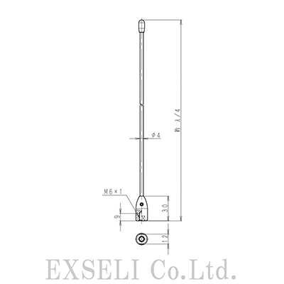 ●容量接地型λ/4ホイップアンテナMG-450-1A-09、MG-450-1B-09、400MHz帯 車載用吸盤マグネット式アンテナSM-450-1A-09、SM-450-1B-09用のアンテナエレメントです。