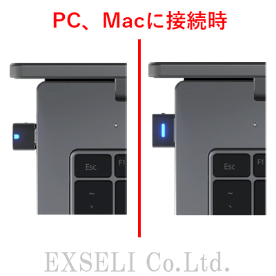 スタンバイモード: ヘッドセットが接続されずにドングルをPCに接続すると、ドングルはスタンバイモードに入り、LEDが消えてスタンバイになります。