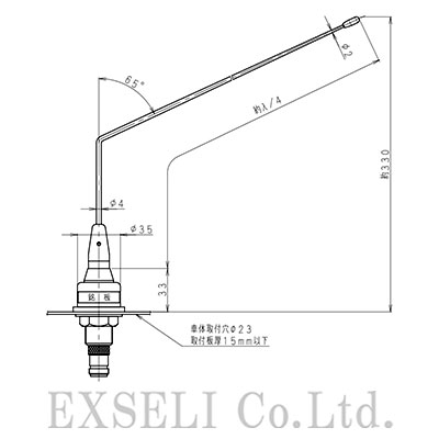 ●穴あけ取付式のホイップアンテナです。車体取付穴φ23mm、取付板厚15mm以下です。取付け場所は車のルーフトップです。