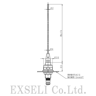 ●穴あけ取付式のホイップアンテナです。車体取付穴φ23mm、取付板厚15mm以下です。取付け場所は車のルーフトップです。