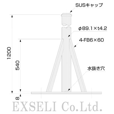 ・マストベース(700角 80A 1.2m ステンレス製): B780A12S