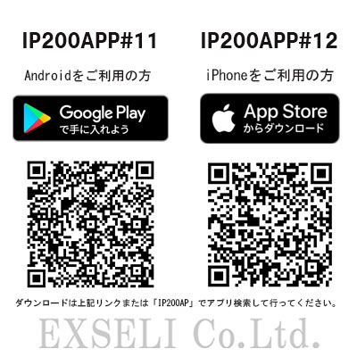 ※IP200APPの入手方法は、iPhoneの方はApp Storeより、Androidをご利用の方はGoogle Playよりダウンロードできます。「IP200APP」でアプリ検索して行ってください。