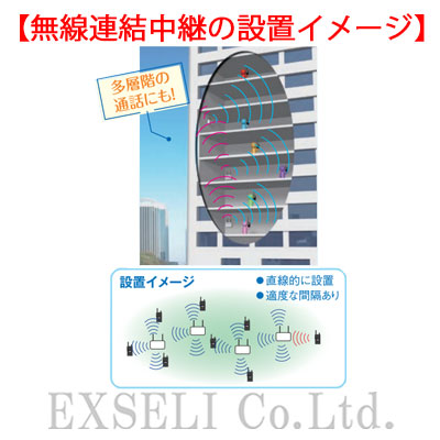 別売えいの無線連結中継装置を使えば広い1フロアや複数階での使用もできます。