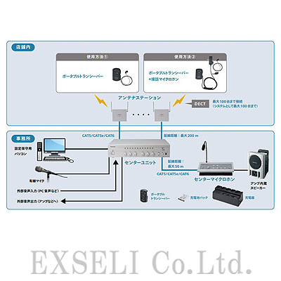 ※アンテナステーション接続は12台まで、接続ケーブルはCAT5/5e/6、接続可能距離は最大200m