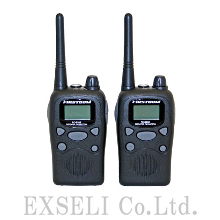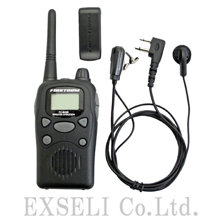 FC-B20Rは2台1セットの特定小電力トランシーバーです。イヤホンマイクもセットで、無線中継装置にも対応しています。